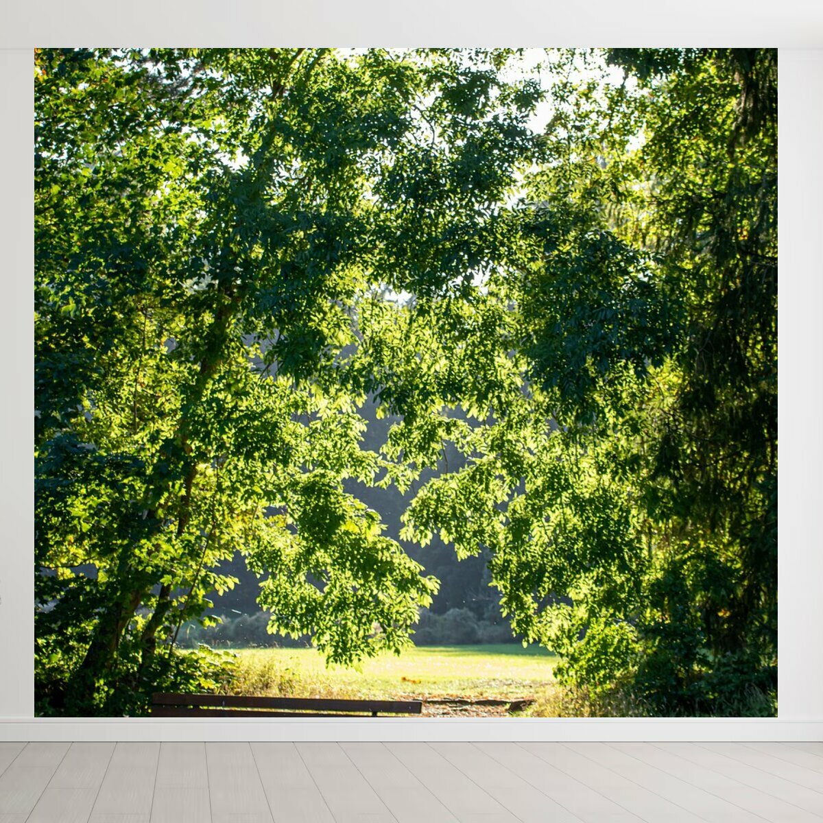 Купить Фотообои ударопрочные моющиеся "Парк, банк, дерево" 300x270 см. флизелиновые на стену