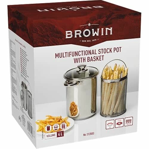 Кастрюля для спаржи BROWIN Rustproof 313500 со стеклянной крышкой, 4 литра, кастрюля для пасты с сетчатым фильтром, для электрических, газовых и индукционных плит интересное: