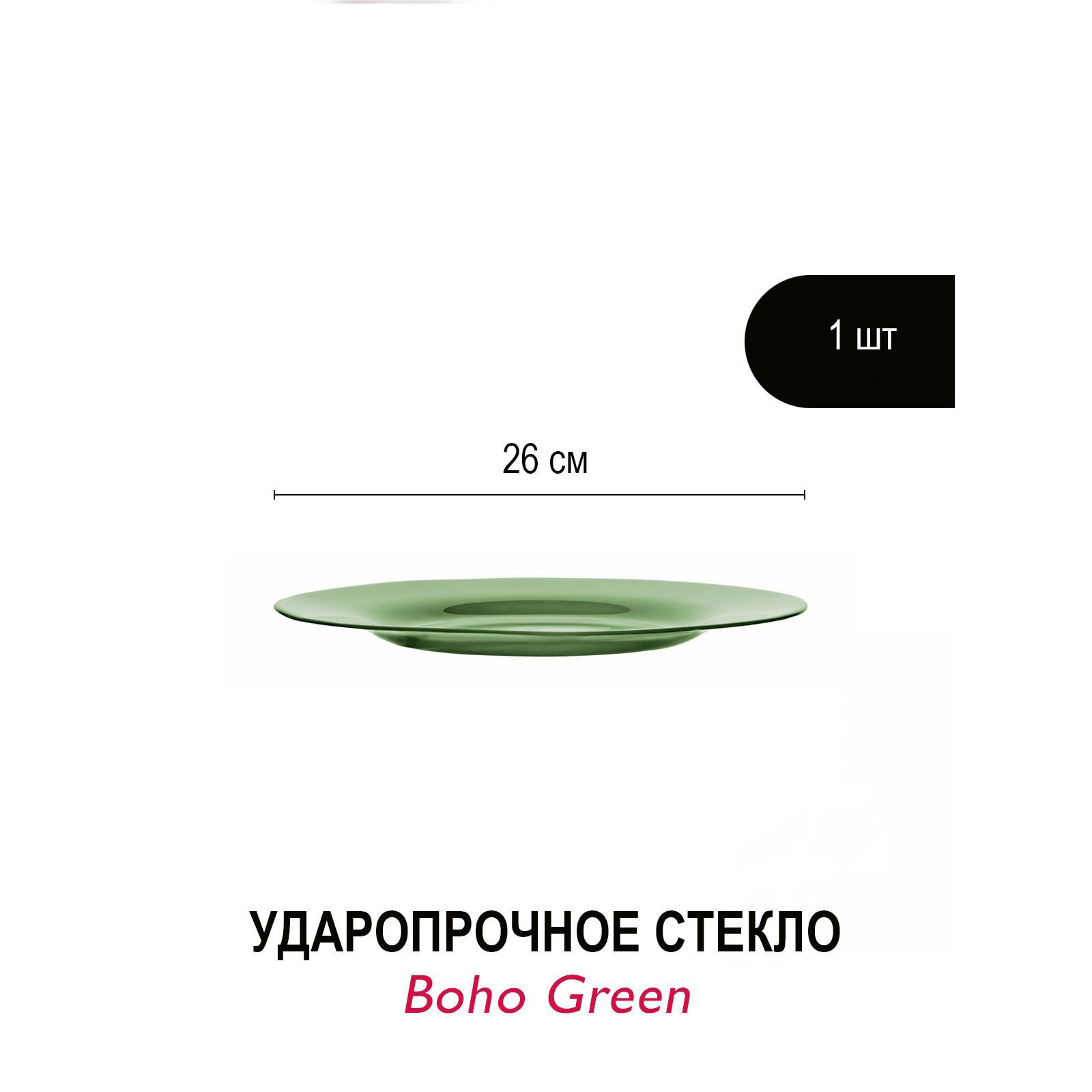 Тарелка обеденная, стекло, 26 см, круглая, Boho, Pasabahce, 10328/SLBD45, зеленая