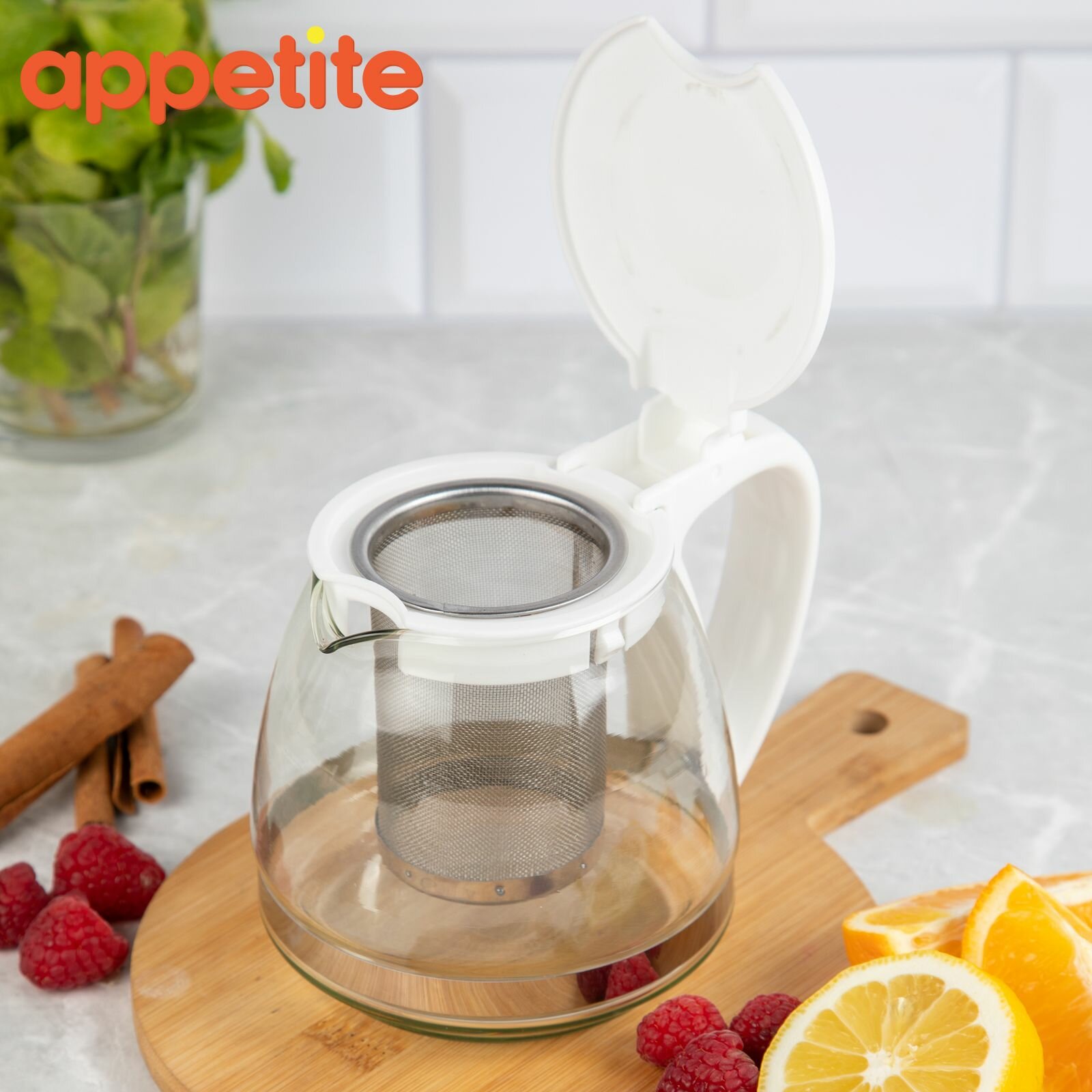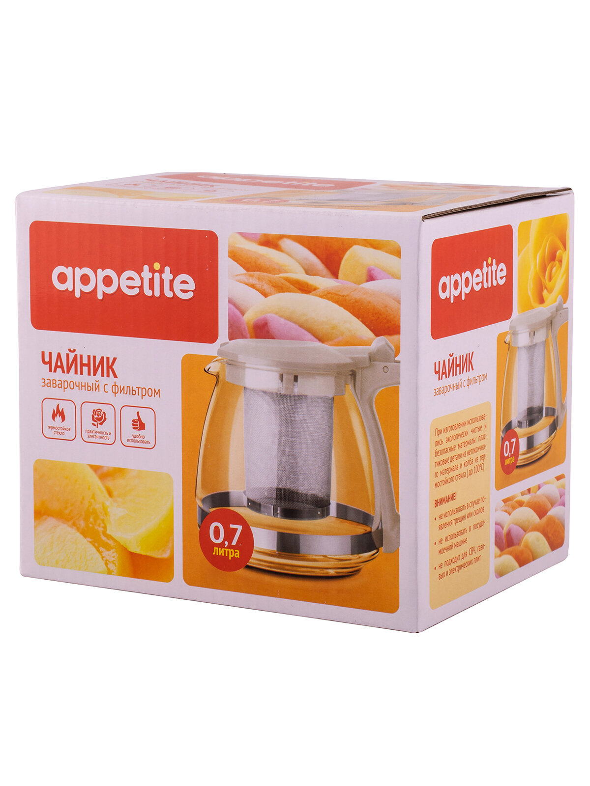 Чайник заварочный стеклянный с фильтром 700 мл ТМ Appetite бежевый интересное:
