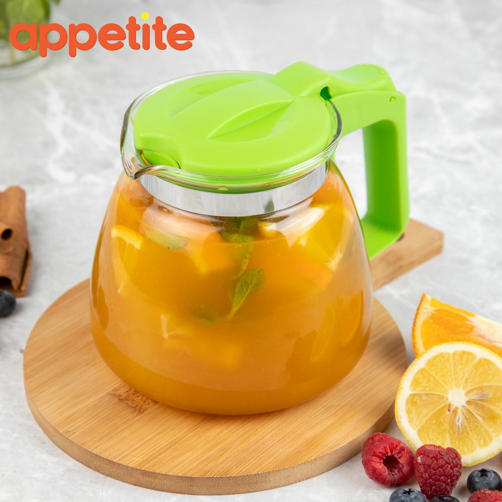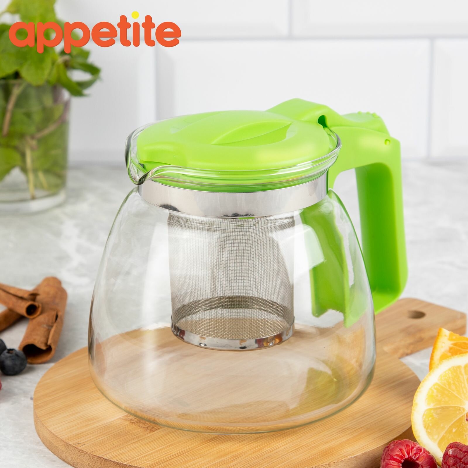 Купить Чайник заварочный стеклянный с фильтром 900 мл ТМ Appetite зеленый