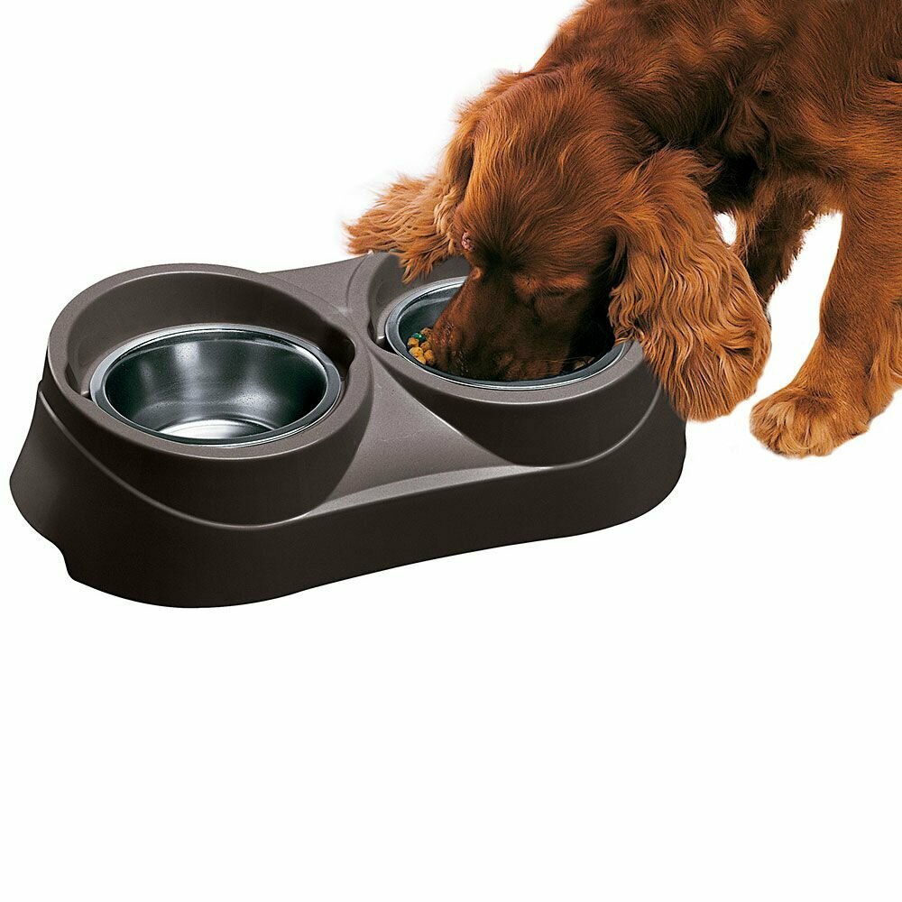 Миска для собак Ferplast / Ферпласт Duo Feed 03 двойная на черной подставке металлическая 2х900мл / товары для животных