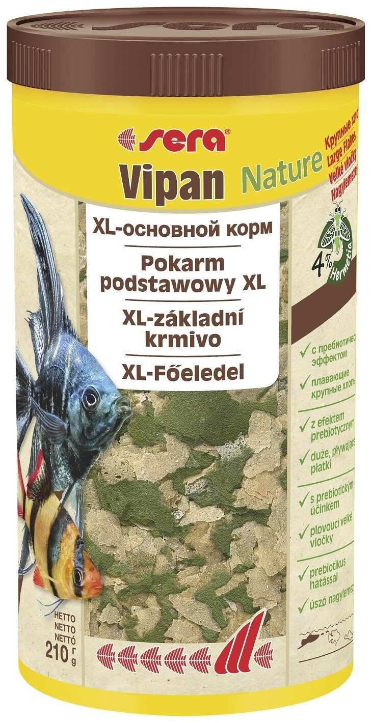 Sera Vipan XL Nature корм для всех декоративных рыб, крупные хлопья 1000мл (210гр) интересное: