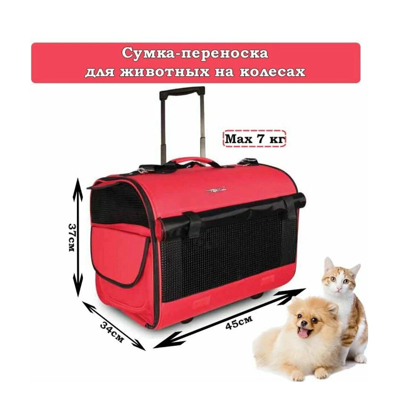 Triol Сумка -чемодан для животных на колесах, 45*34*37 см, красный/чёрный (FFH011) 3.75 кг
