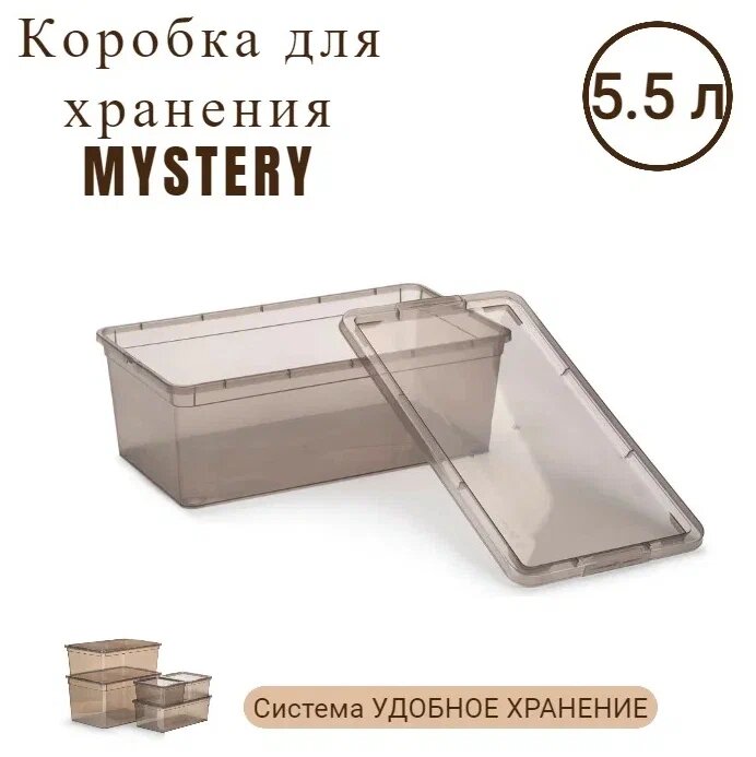 Купить Коробка/ящик для хранения с крышкой 5,5 л, полимербыт MYSTERY, цвет серо-коричневый