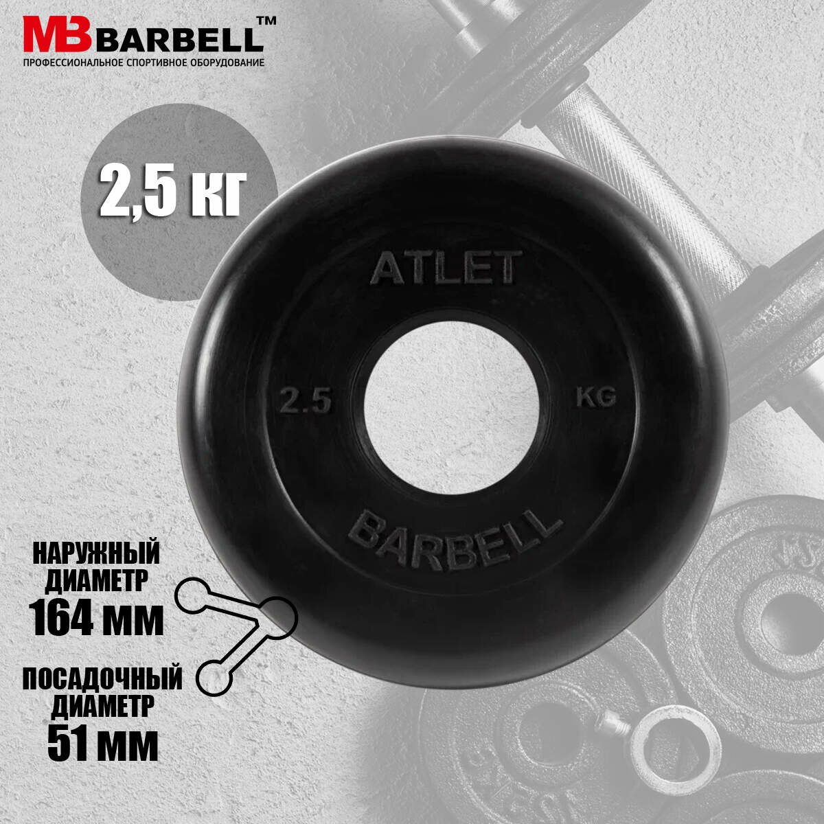 Диск MB Barbell «Атлет», 51 мм, 2.5 кг (MB-AtletB51-2,5), для штанги