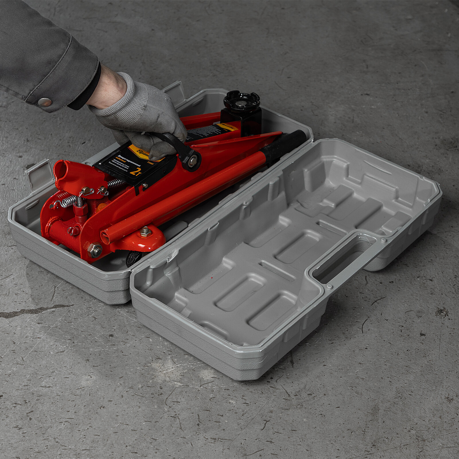 Домкрат гидравлический подкатный, 2 т, h подъема 125-300 мм, в пластиковом кейсе