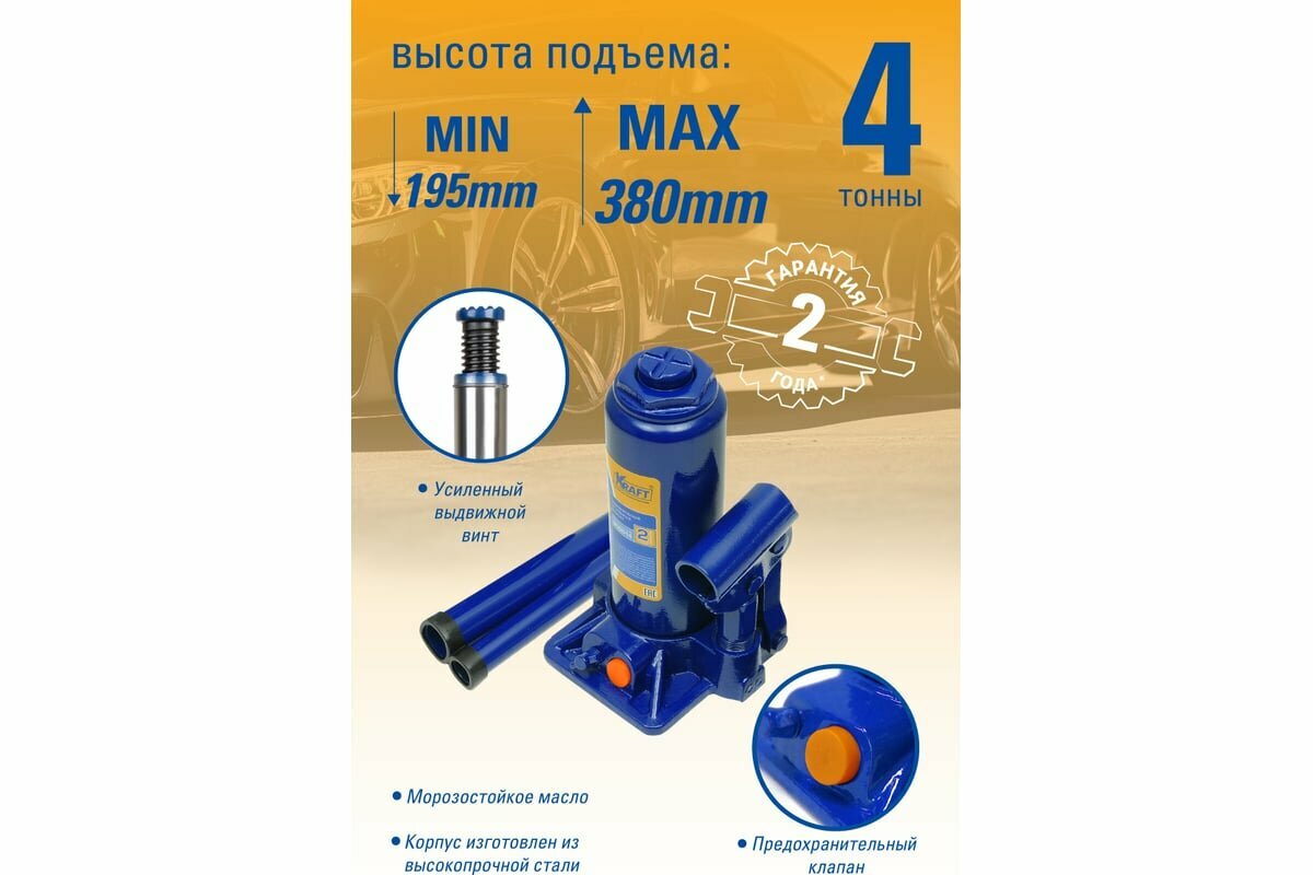 Домкрат Гидравлический 4т 195мм-380мм В Кейсе (Kraft) Кт 800014 Kraft арт. KT 800014