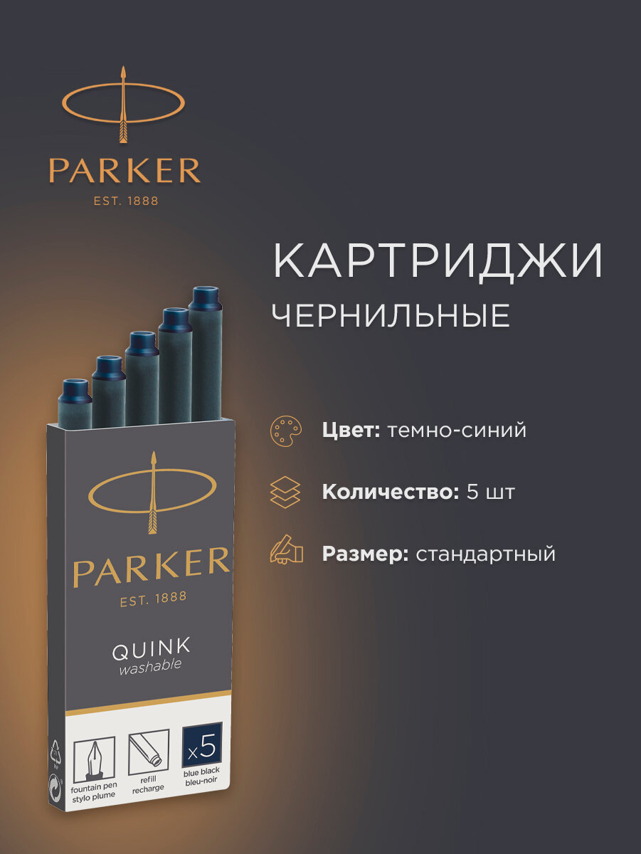 Parker Чернила картридж, темно-синий, 5 шт в упаковке