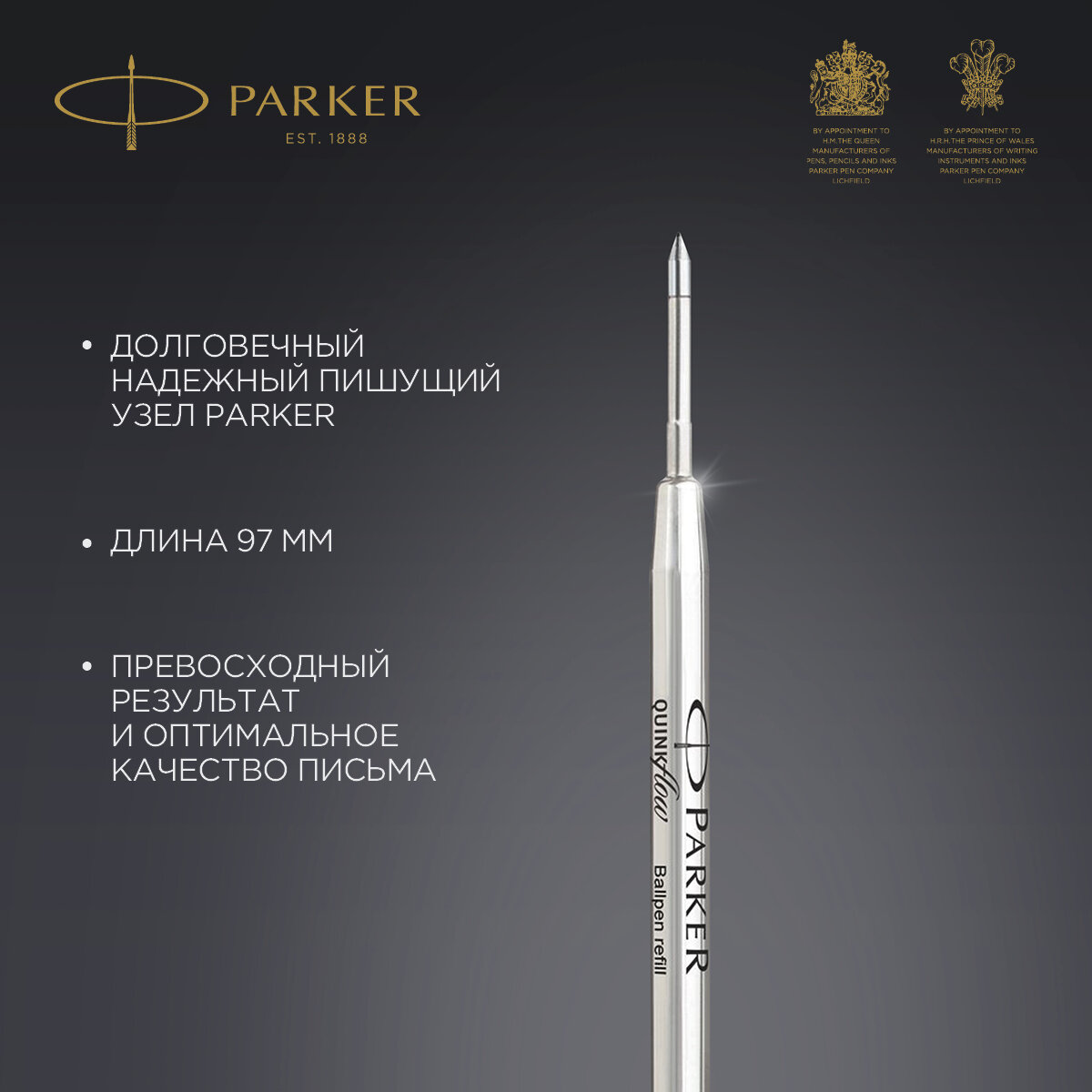 Стержень шариковый PARKER "Quinkflow", металлический, 98 мм, линия письма 0,5 мм, блистер, черный, 1950367