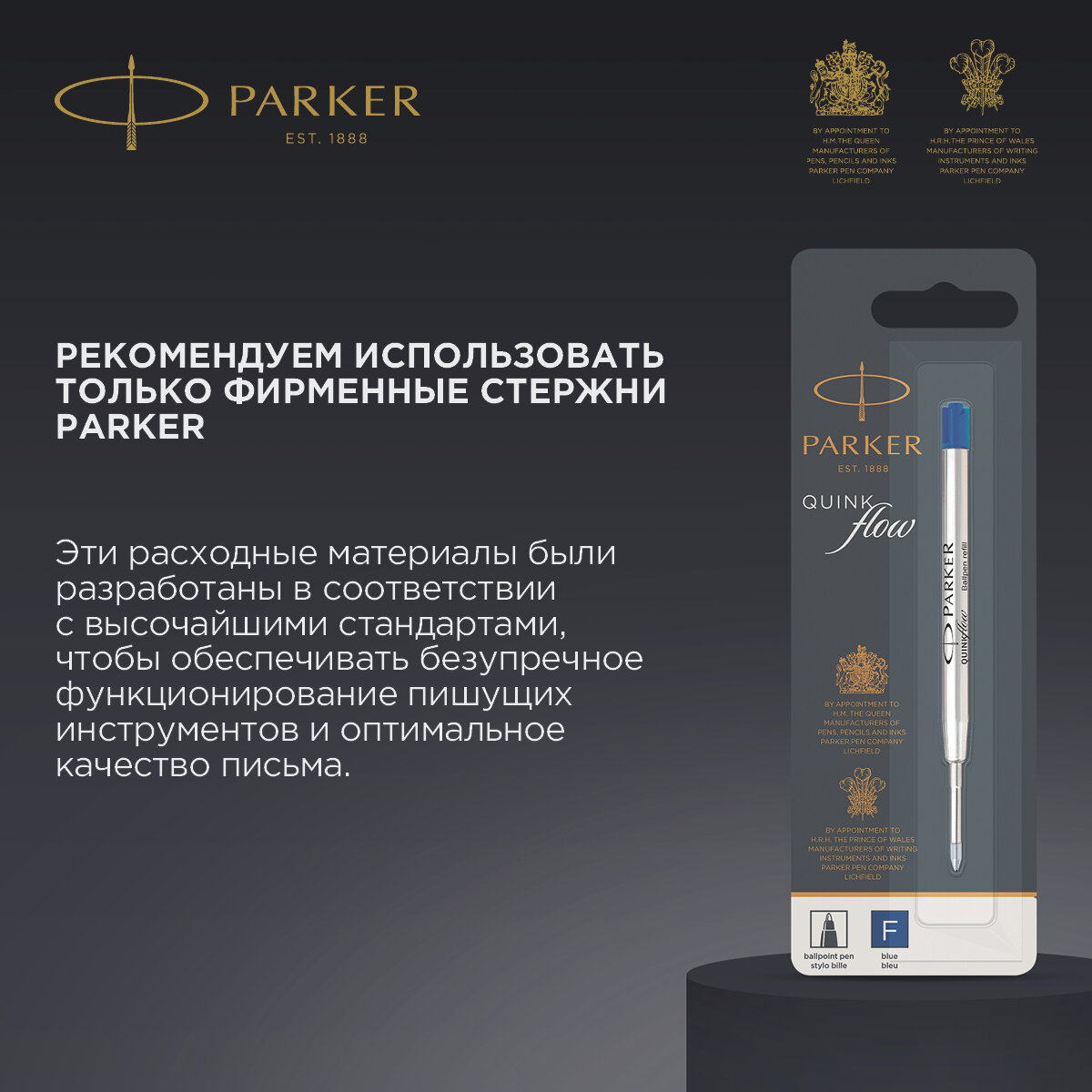 Стержень шариковый Parker QuinkFlow BP Z08 F, 0.8 мм, чёрный (1950367) 4579364