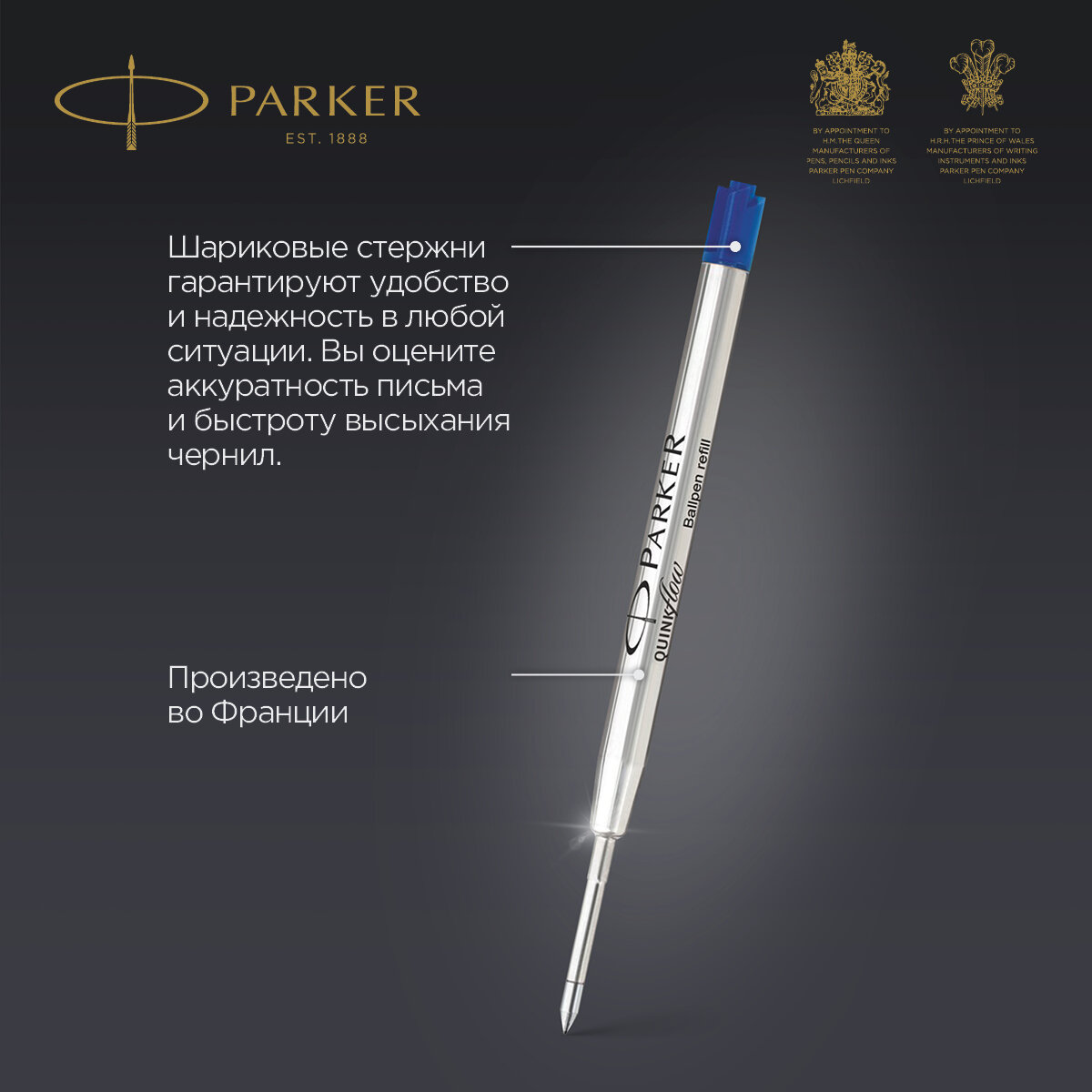 Стержень Parker QUINKFlow Ball Point Refill Z08 (на замену Z02) F 0.8мм, синий, метал 413947 935325