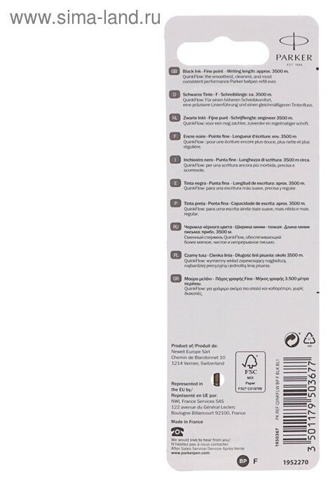 1950367 | Стержень шариковый Parker Fine Black