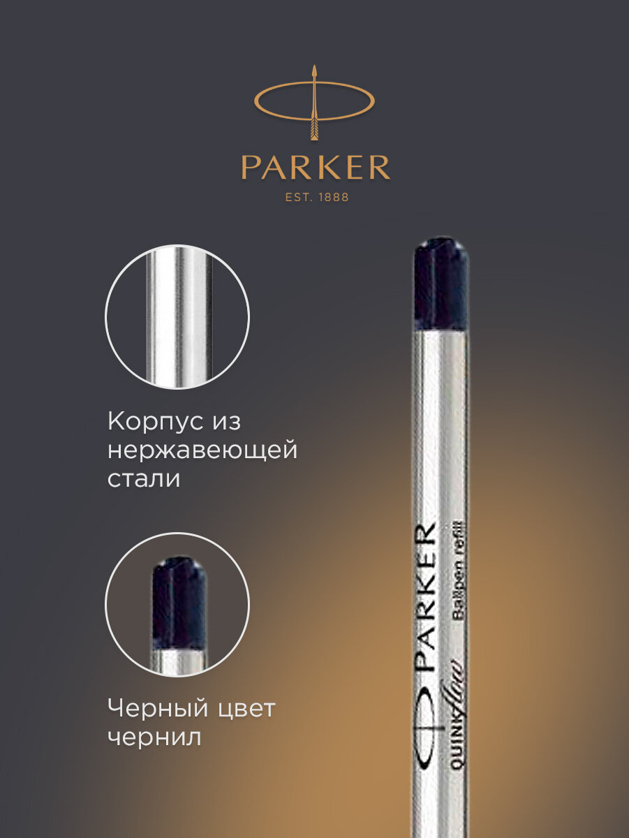 Стержень шариковый PARKER "Quinkflow", металлический, 98 мм, узел 0,8 мм, блистер, черный, 1950367