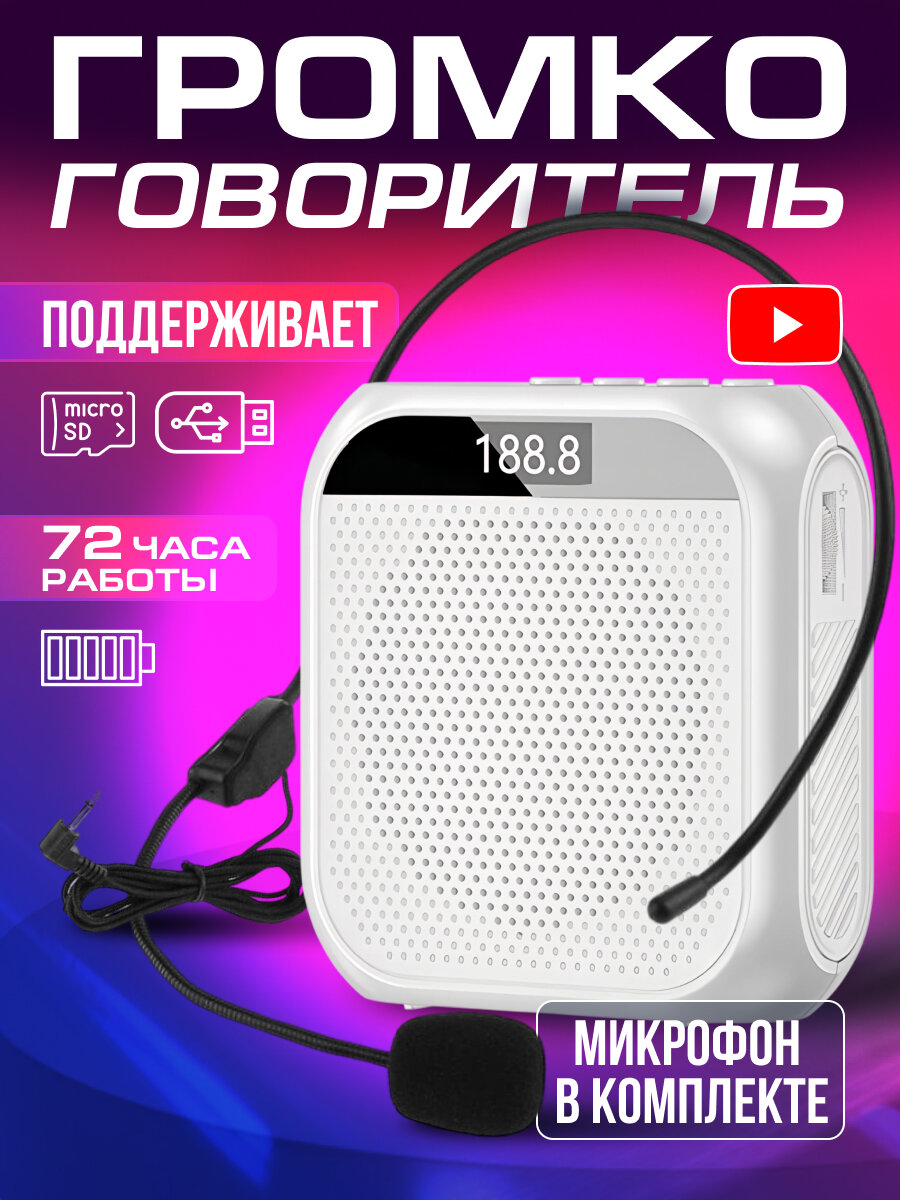 Громкоговоритель для экскурсовода поясной S17 Little Bee, белый, Bluetooth, гарнитура