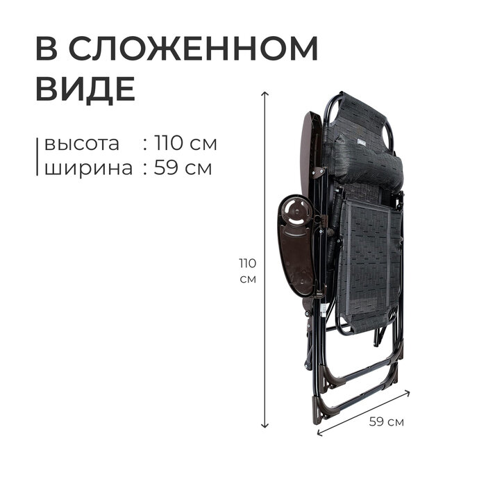 Кресло шезлонг складное с полкой, подножкой и съемным подголовником, 8 положений спинки