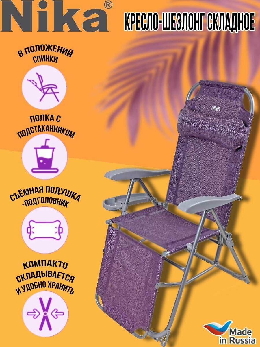 Кресло-шезлонг 3 складное с подножкой, НИКА, КШ3 баклажан