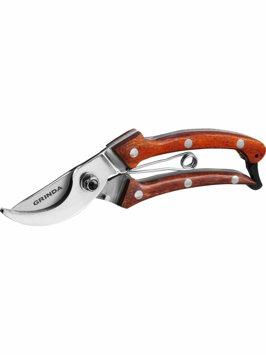 GRINDA 210 мм, цельнокованый из нержавеющей стали, с деревянными рукоятками, секатор 423415
