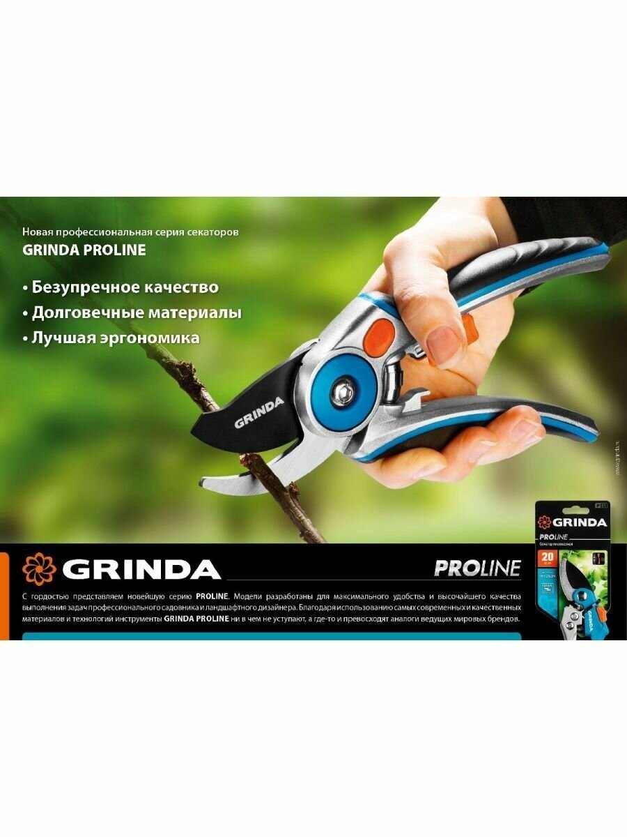 GRINDA P-29 Секатор с эргономичными алюминиевыми рукоятками, плоскостной, 200 мм, GRINDA PROLine, ( 423429 )
