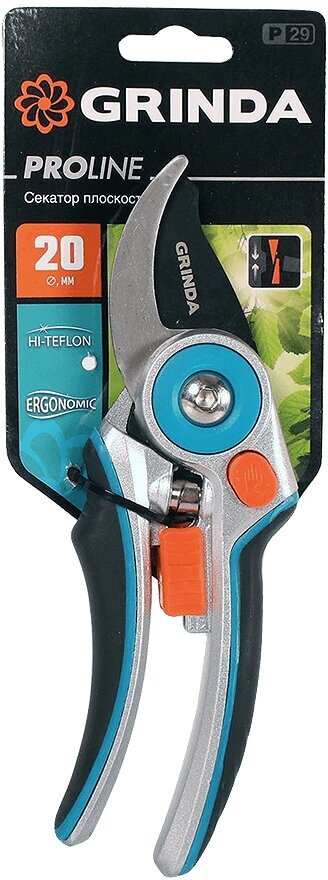 Плоскостной секатор, усиленная конструкция, тефлоновое покрытие, лезвия с эргономич противоскользящ AL рукоятками 210 мм GRINDA PROLine P-29 ( 423429 )