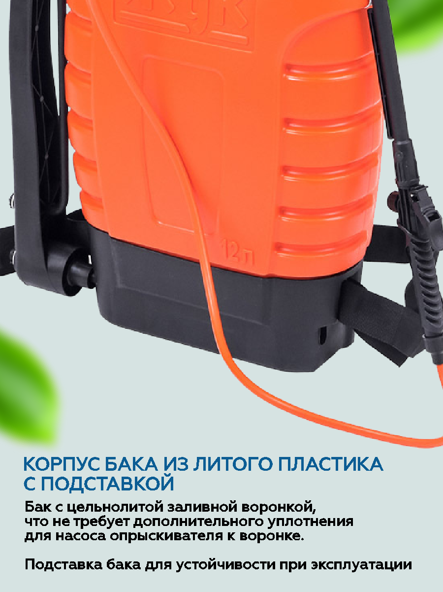 Опрыскиватель ЖУК Оптима ОГ-112 ранцевый пластик оранжевый 15л / распылитель для комнатных растений / пульверизатор для сада и огорода