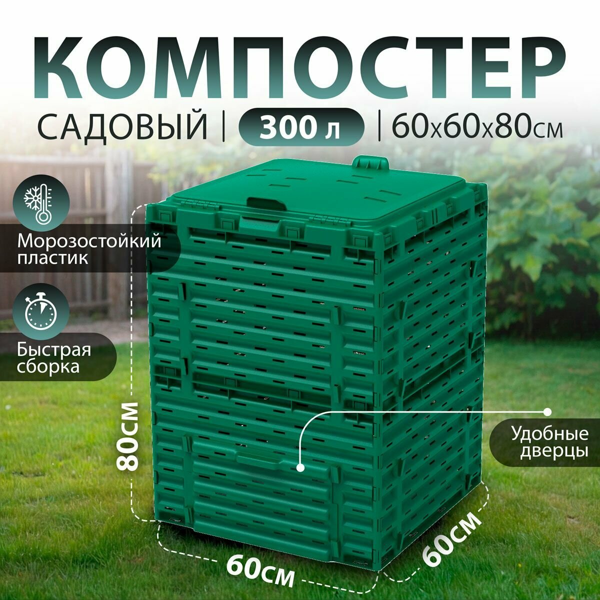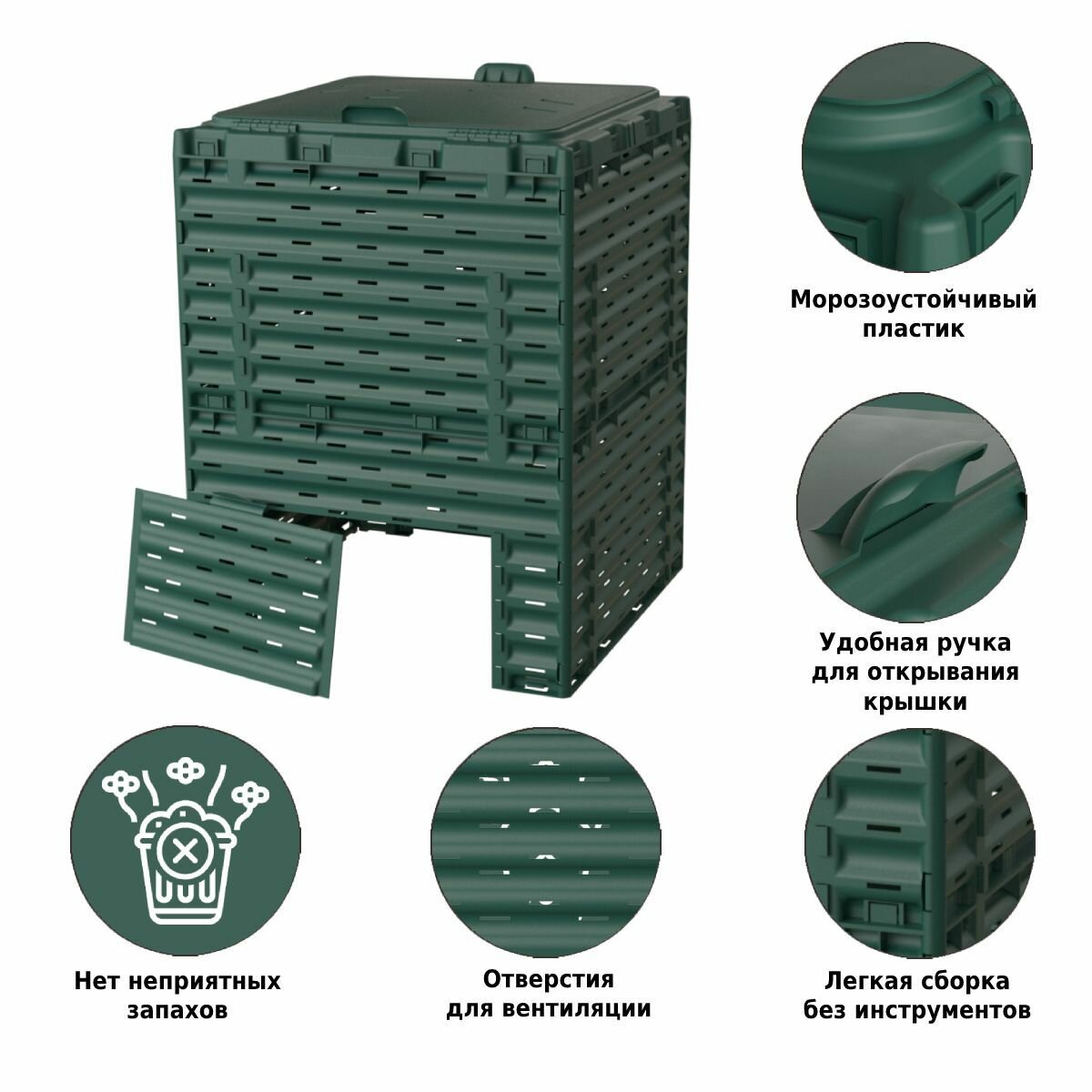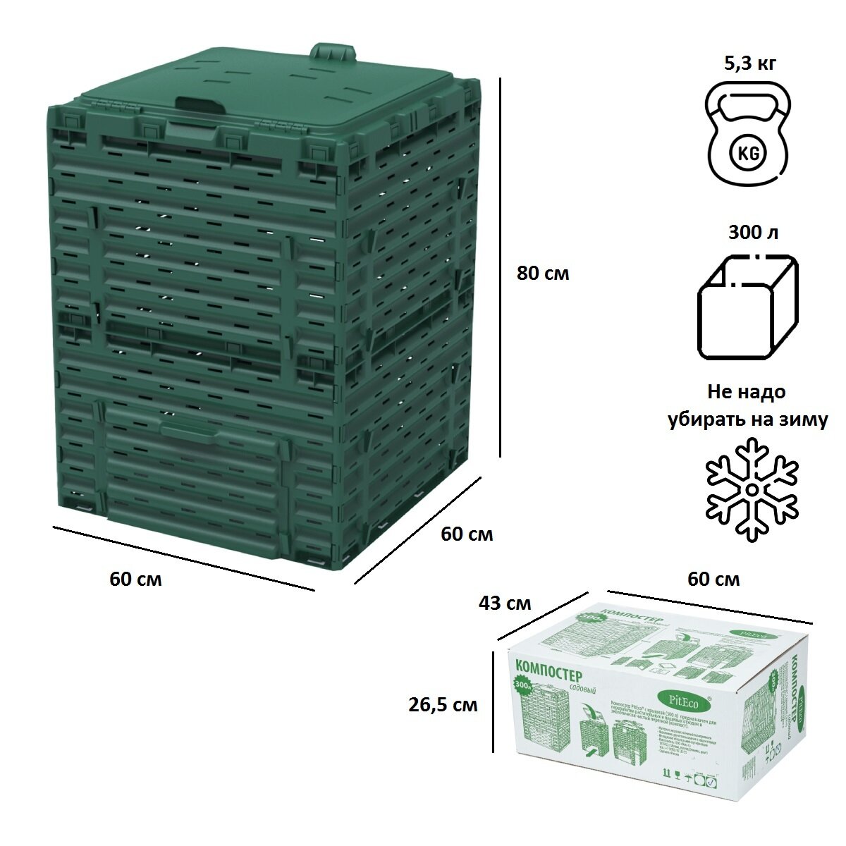 Садовый компостер PITECO 300 л с крышкой (80 × 60 × 60 см, зелёный)