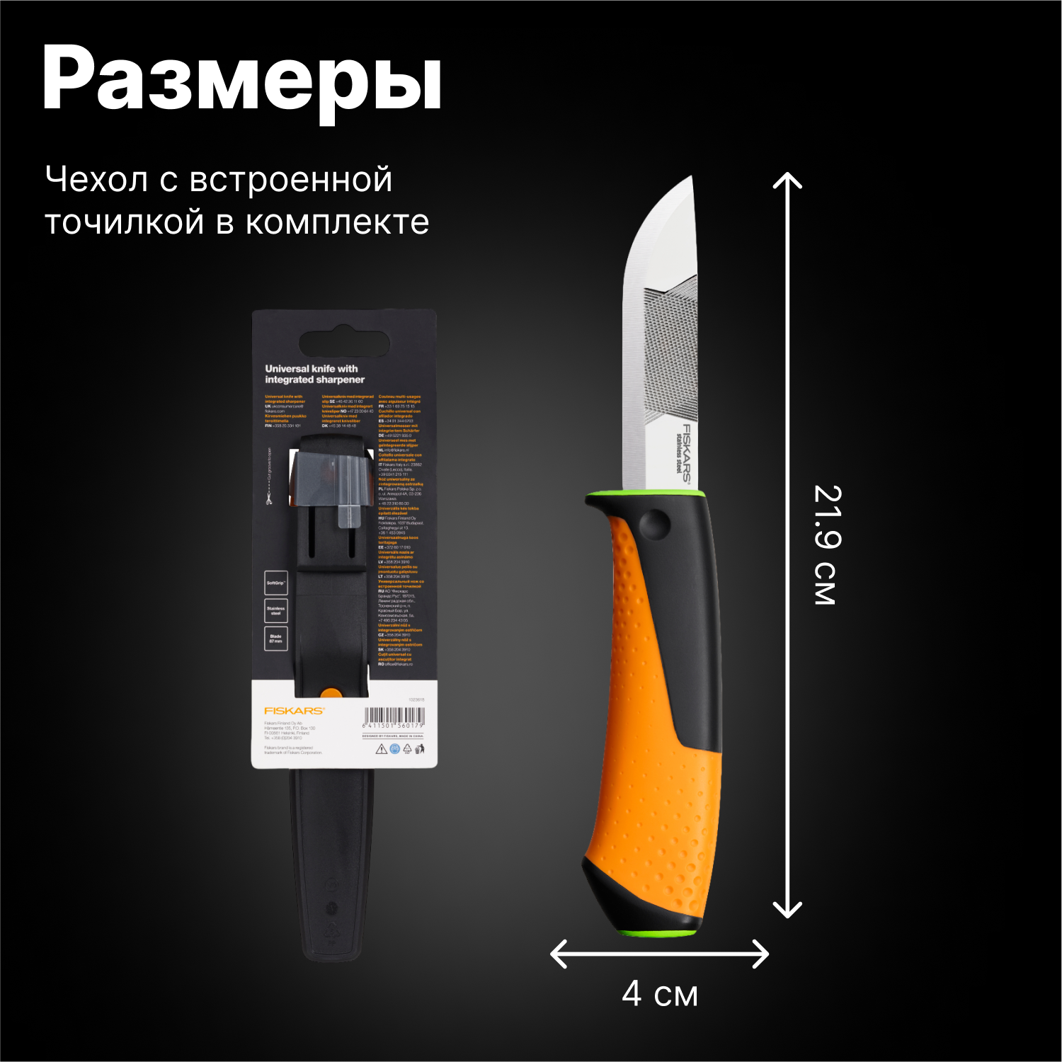Нож с точилкой Fiskars 1023619 .