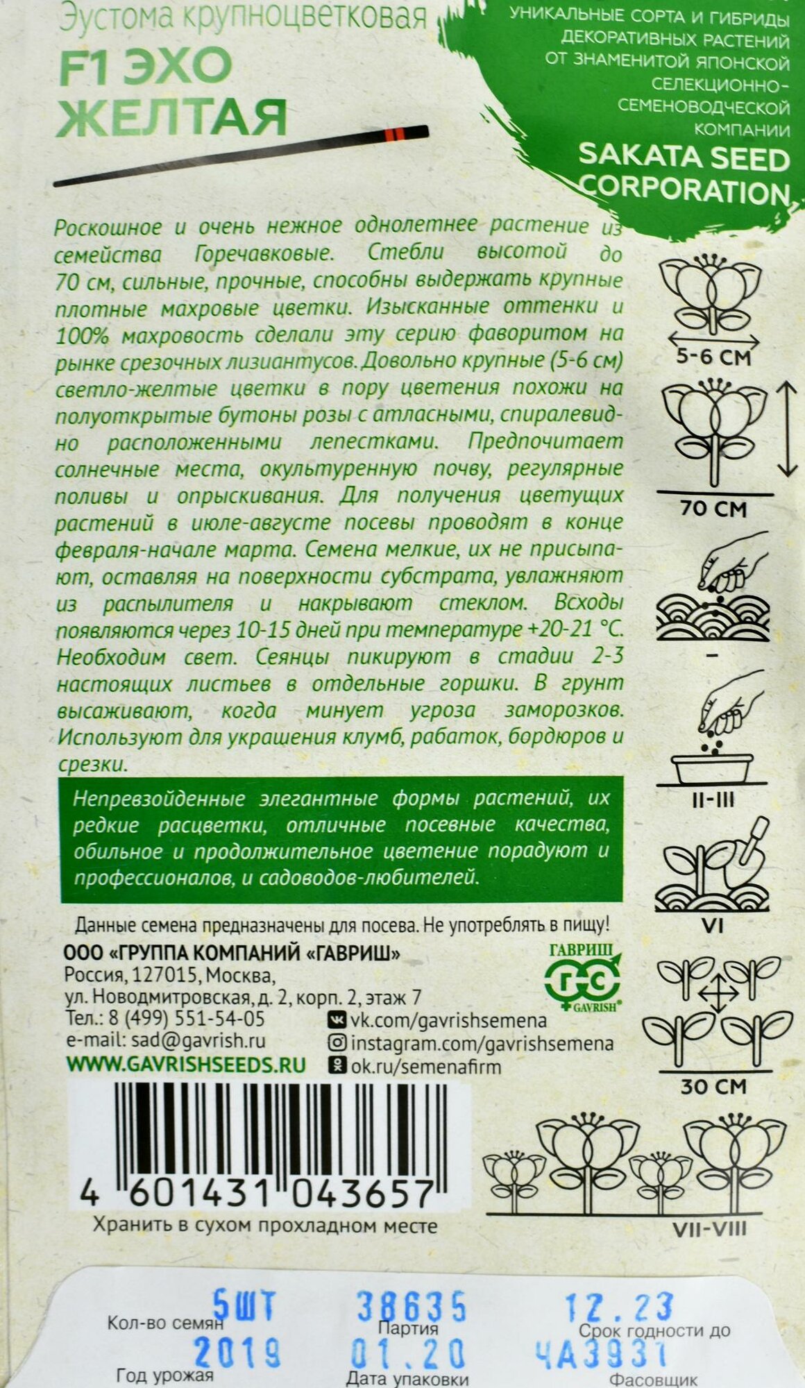 Гавриш, Эустома Эхо Пикоти розовая F1, Саката серия Эксклюзив 4 семени