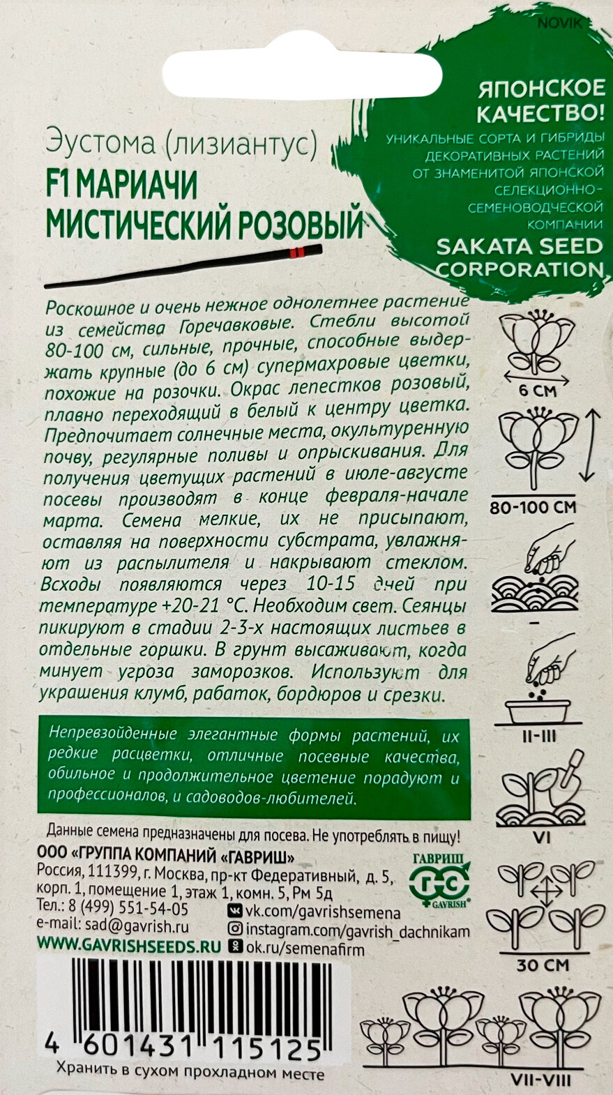 Семена Эустома Мариачи мистический розовый F1 5шт махровая Одн 100см (Гавриш) Саката