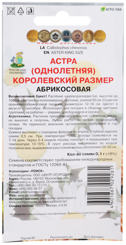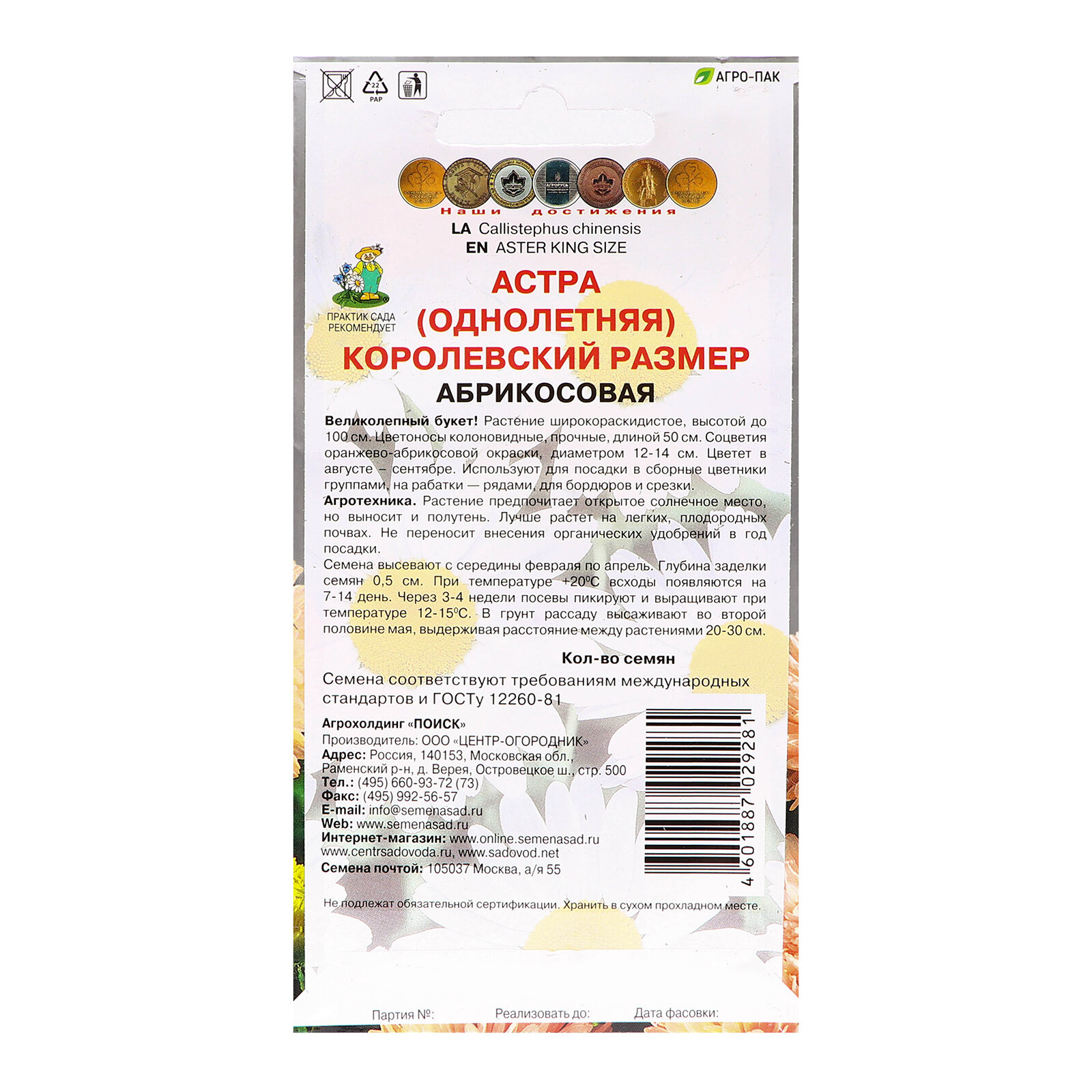 Купить Семена Астра Королевский размер Абрикосовая пионовидная 0,1г Одн 100см (Поиск)