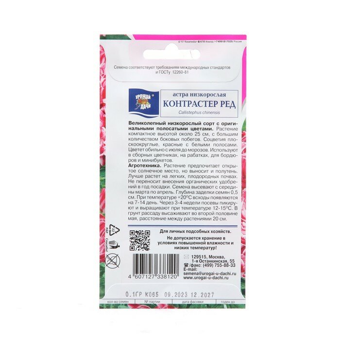 СохранитьСемена цветов Астра низкая "Контрастер Ред", 0,1 г интересное: