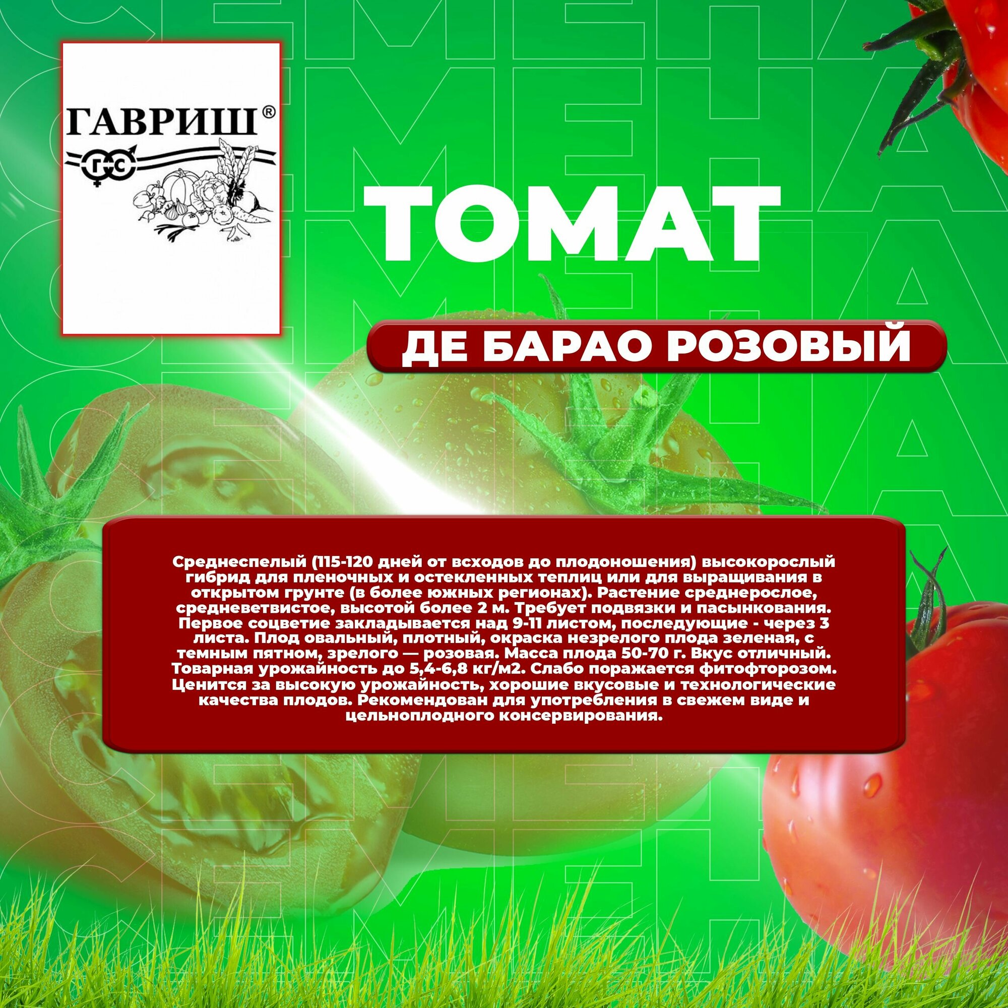 СохранитьСемена Томат Де Барао Розовый 0,05г Индет (Гавриш) Белый пакет интересное: