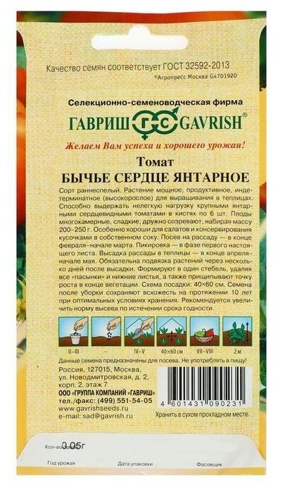СохранитьГавриш, Томат Бычье сердце янтарное 0,05 грамм интересное: