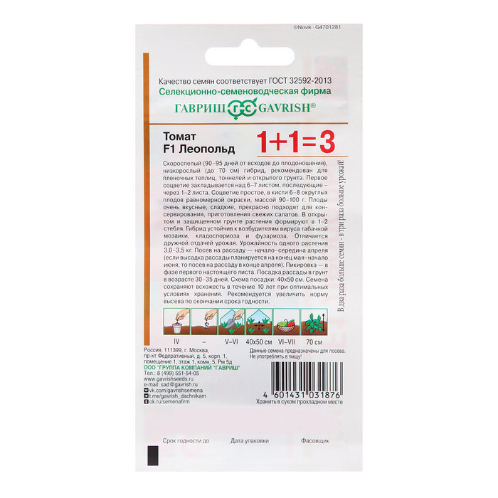 Ниже Вы можете прочитать отзывы на Гавриш, Томат Леопольд F1 серия 1+1, 25 семян, ознакомится с подробными характеристиками, посмотреть интересные обзоры и фотографии на Гавриш, Томат Леопольд F1 серия 1+1, 25 семян.