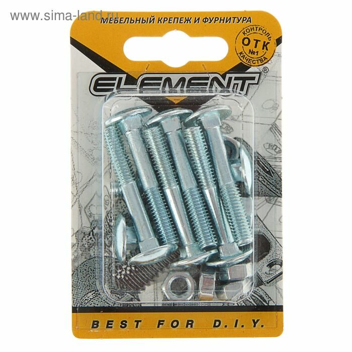 Болт мебельный Element, DIN603, 6х50 мм, с гайкой, оцинкованный, на блистере 8 шт. 2332949