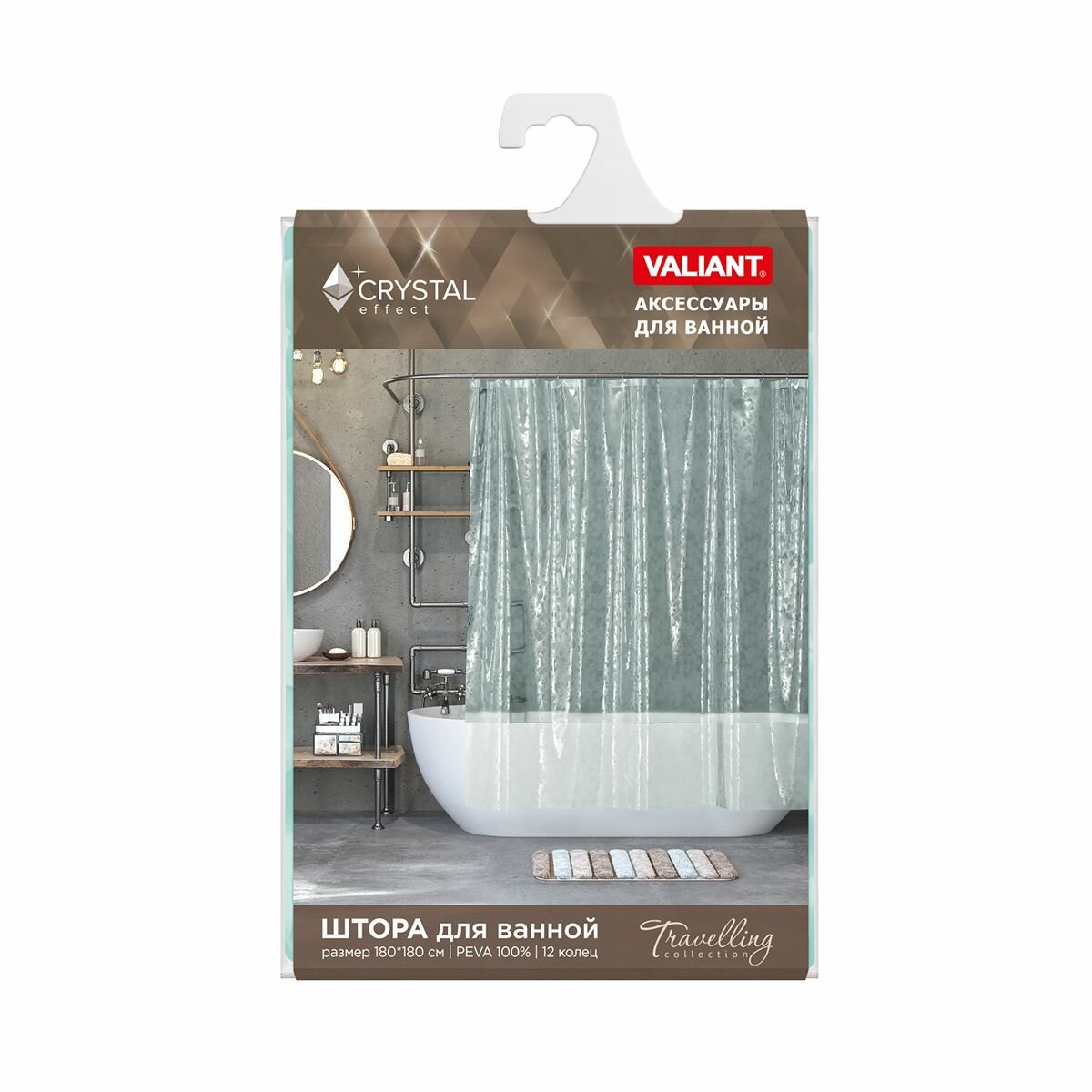 VAL TC-1818C Штора для ванной комнаты с кристаллическим эффектом, PEVA, 180*180 см, TRAVELLING, шт