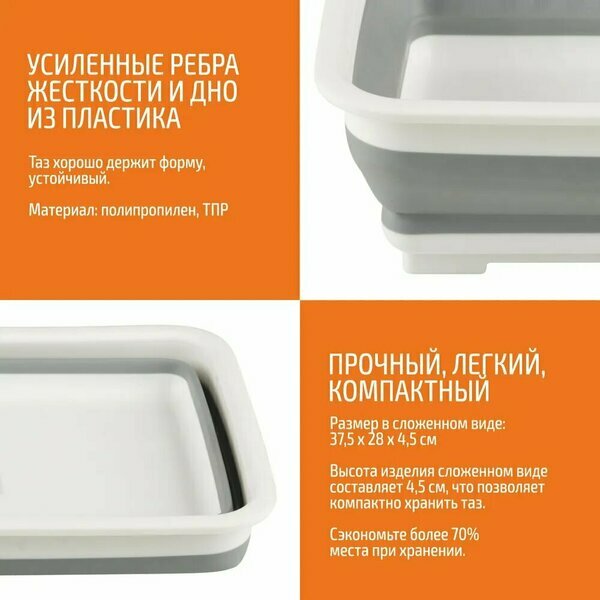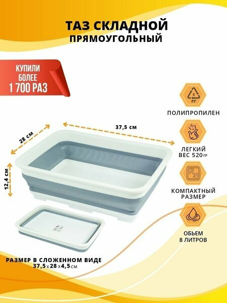 Таз складной прямоугольный RFB-8, 8 литров Рыжий Кот 3920 интересное: