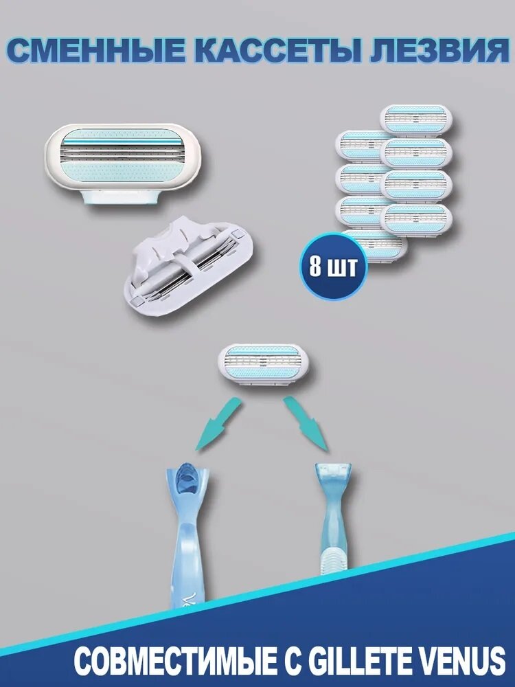 Лезвия Gillette Venus сменные для женского станка , 3 лезвия, 8 шт