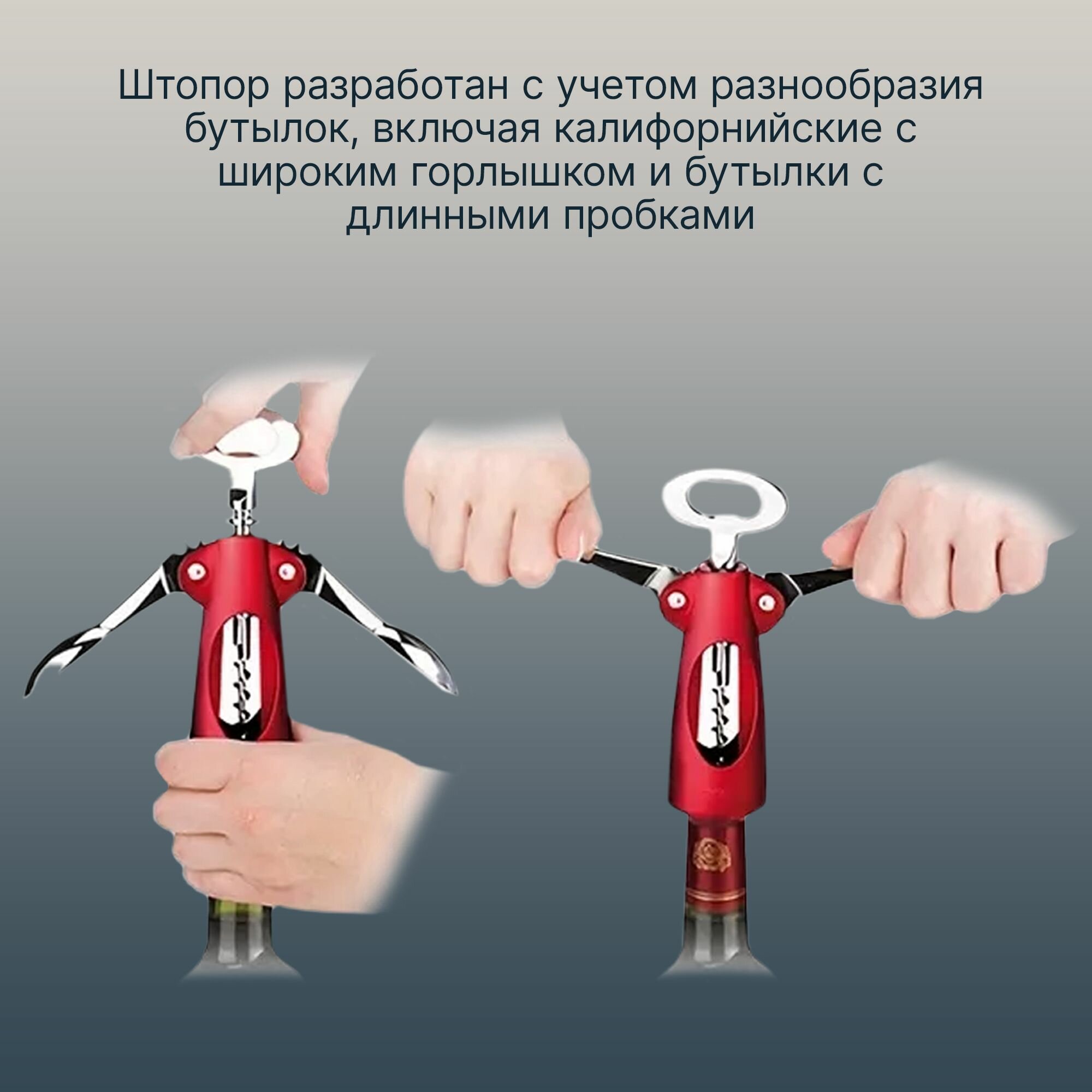 | Минусы: | Толстоват винт, поэтому крошит пробку( 70% из всех открытых ). |