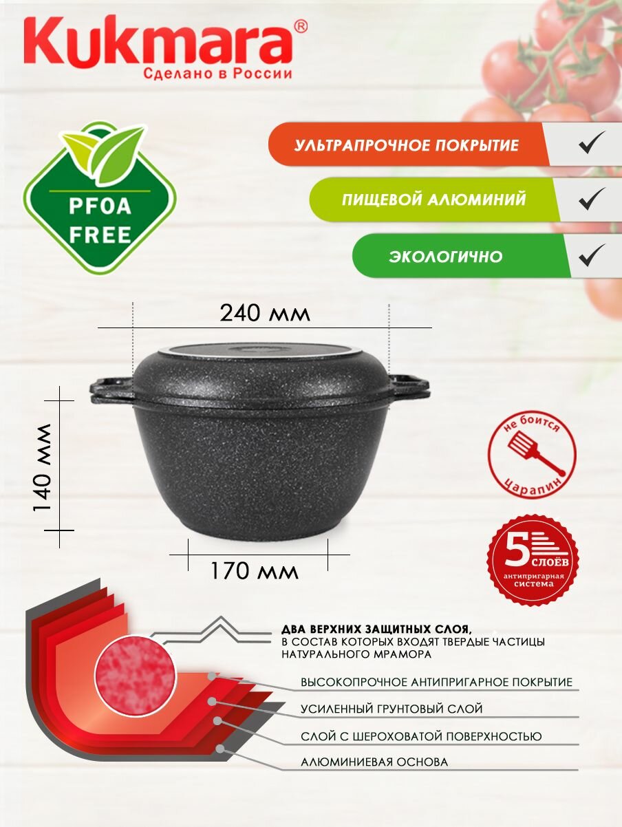 Казан с крышкой-сковородой KUKMARA КМТ44а, 4л (темный мрамор)