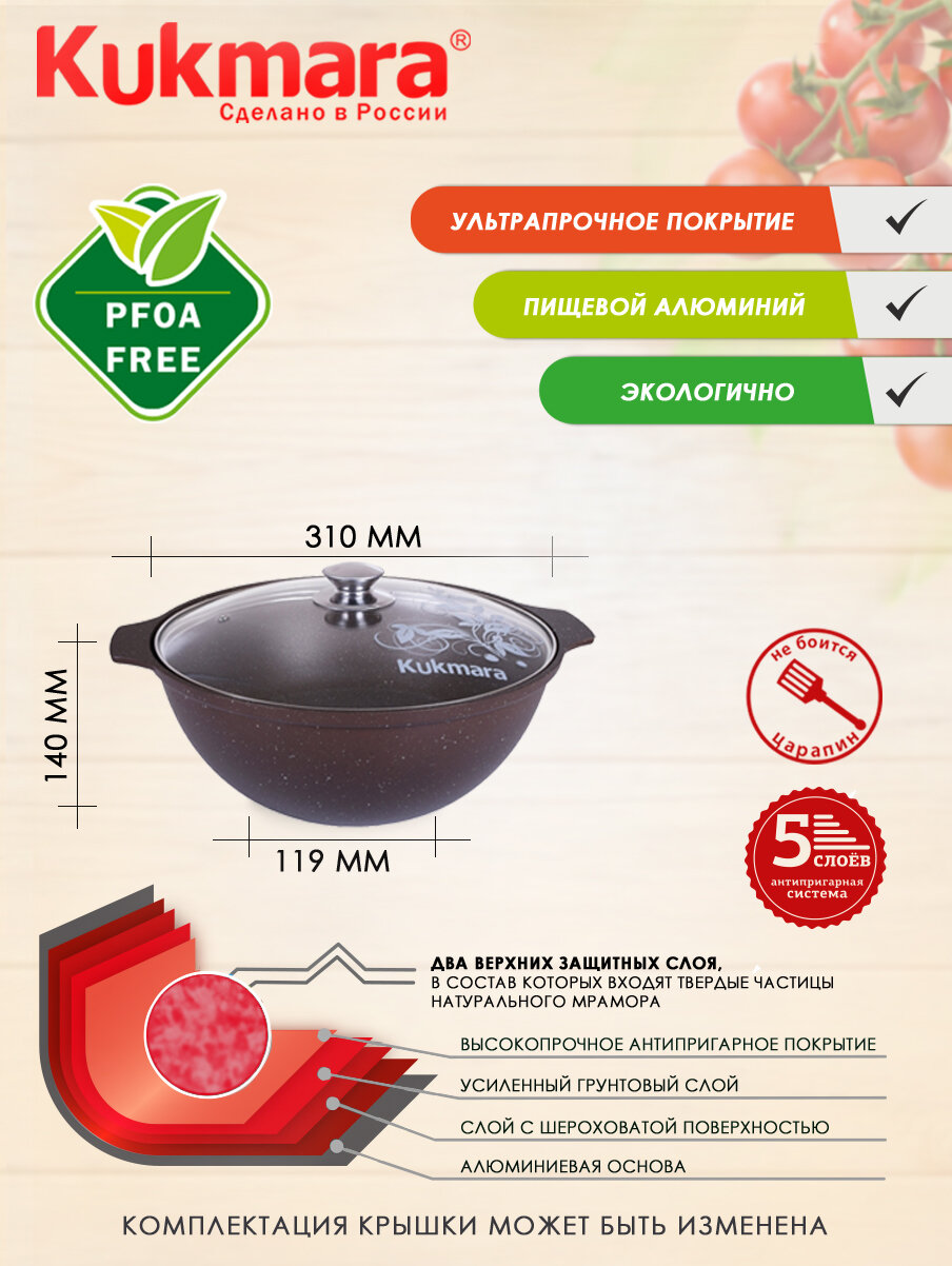 Казан для плова Kukmara 4,5л c антипригарным покрытием (темный мрамор), со стеклянной крышкой с 5 слойной системой покрытия