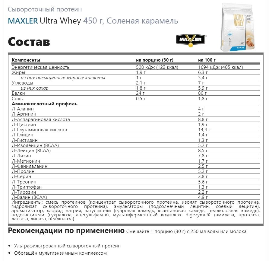 СохранитьСывороточный протеин Ultra Whey 450 гр пакет (Maxler) Соленая карамель интересное:
