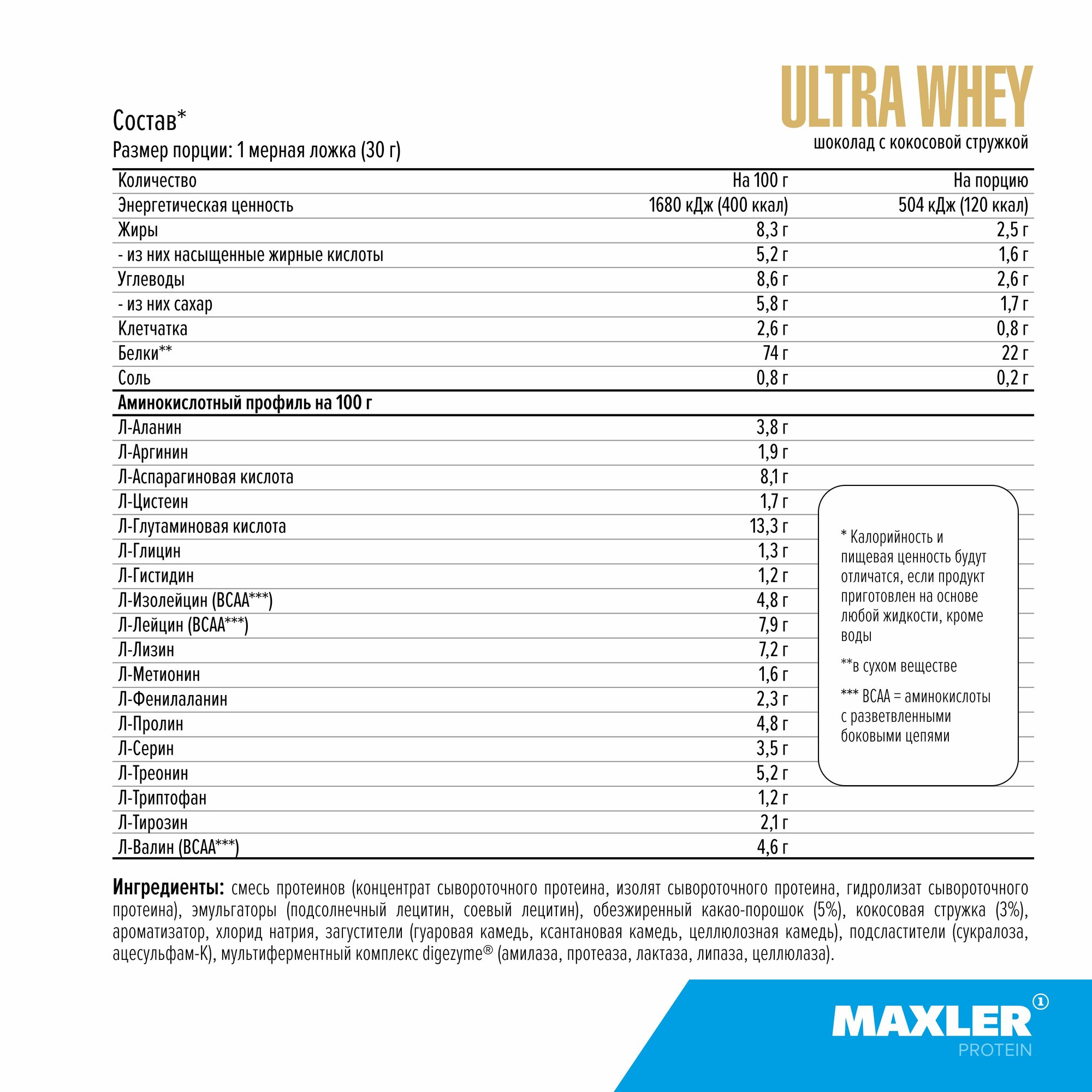 Ниже Вы можете прочитать отзывы на Ultra Whey 300 гр (Maxler) Шоколад-кокос, ознакомится с подробными характеристиками, посмотреть интересные обзоры и фотографии на Ultra Whey 300 гр (Maxler) Шоколад-кокос.