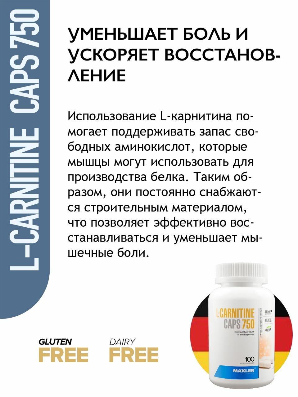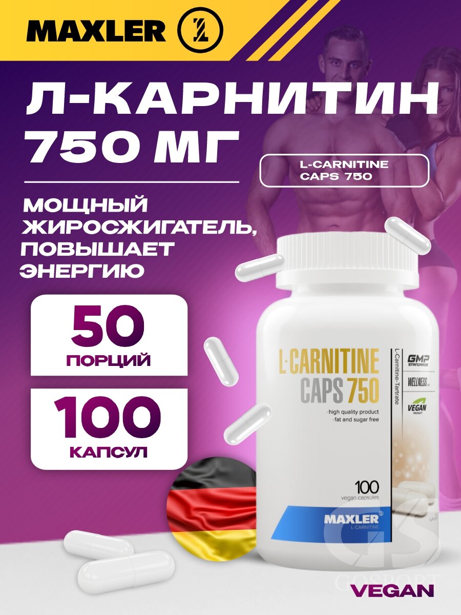 Жиросжигатель Maxler L-Carnitine 750 мг ( Л Карнитин ), 100 шт