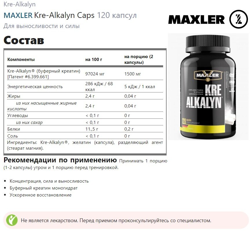 Буферный креатин моногидрат Maxler Kre-Alkalyn, 120 капсул интересное: