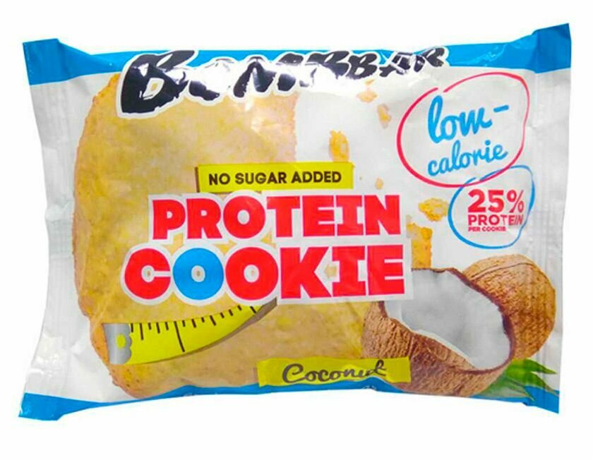 Низкокалорийное протеиновое печенье Bombbar Protein Cookie без сахара низкокалорийное "Кокос", 12шт х 40г