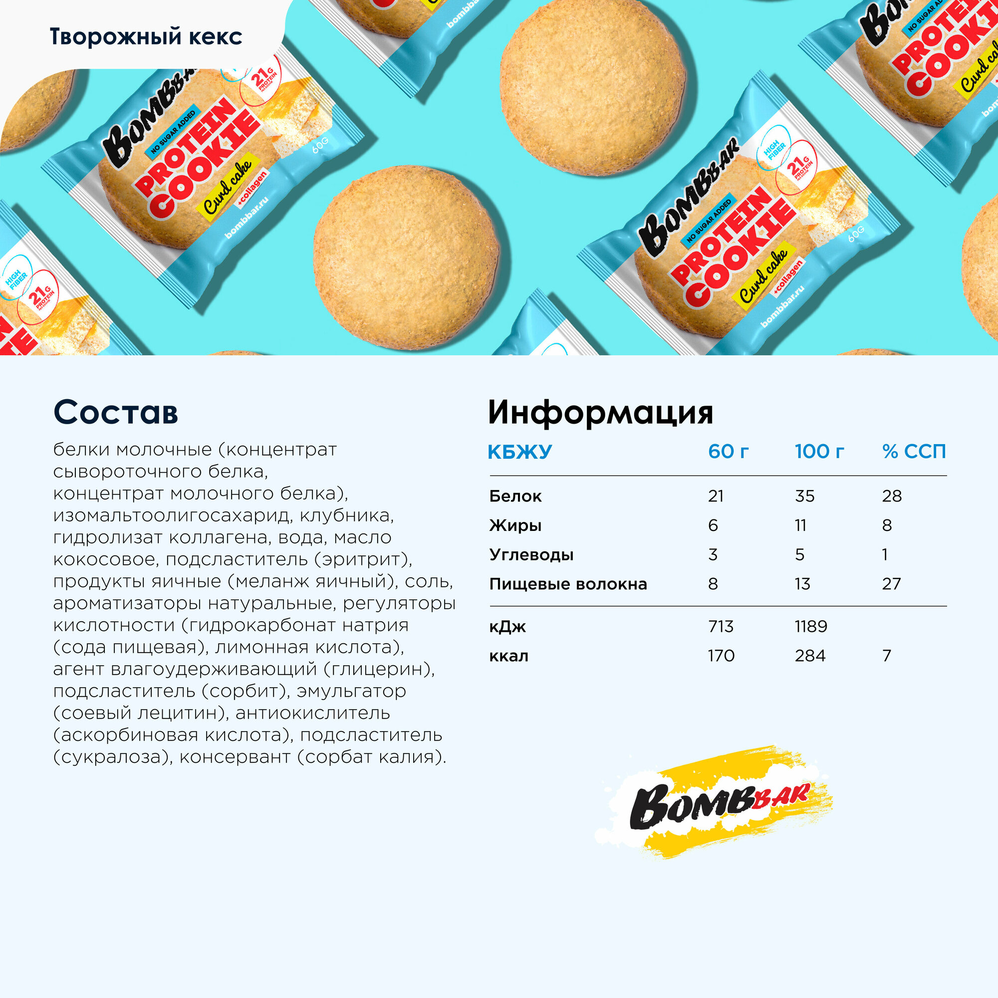 Bombbar Печенье (60 г) Творожный Кекс