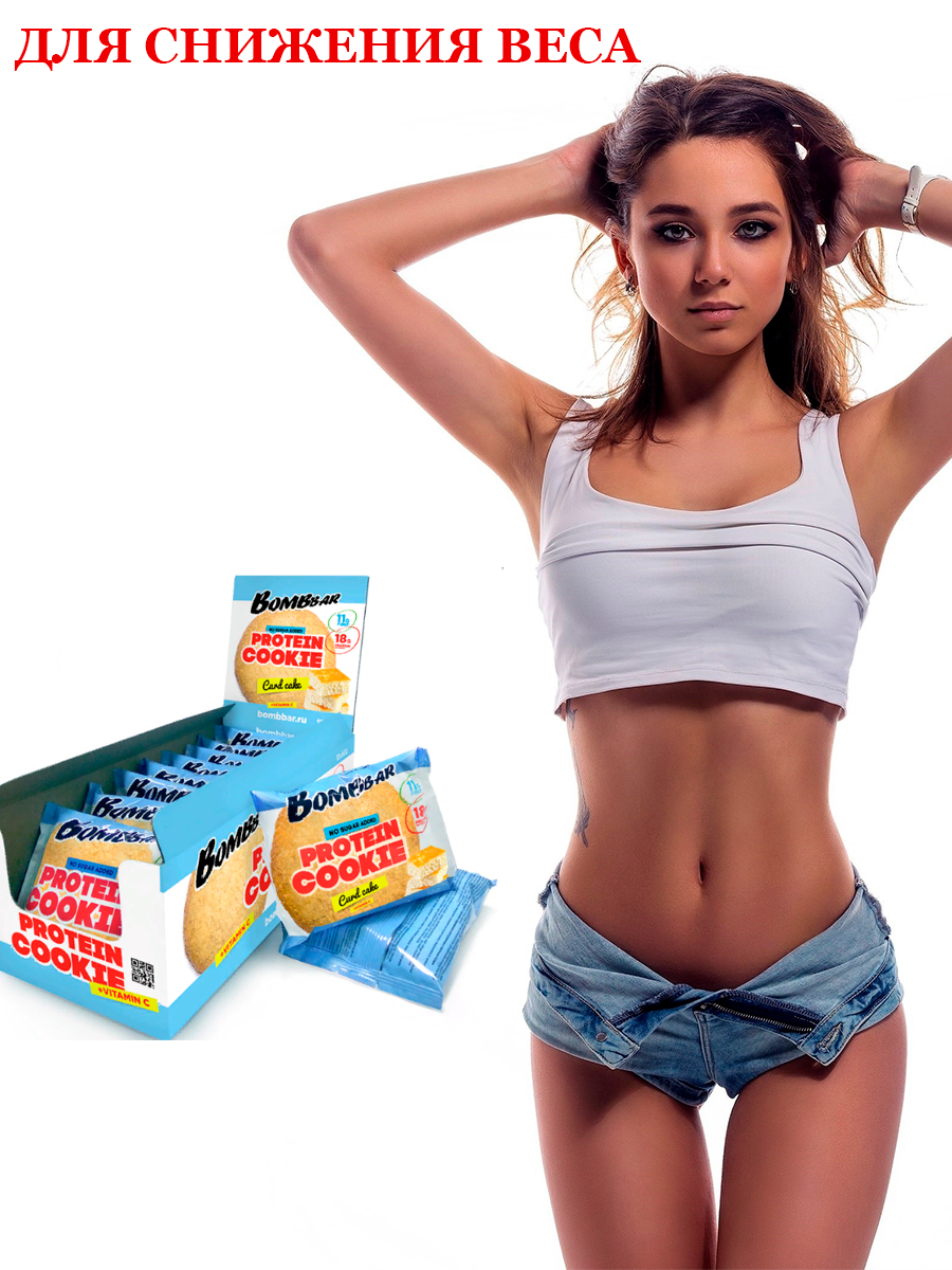 Протеиновое печенье без сахара Bombbar, Творожный кекс, 60г х 10 шт.