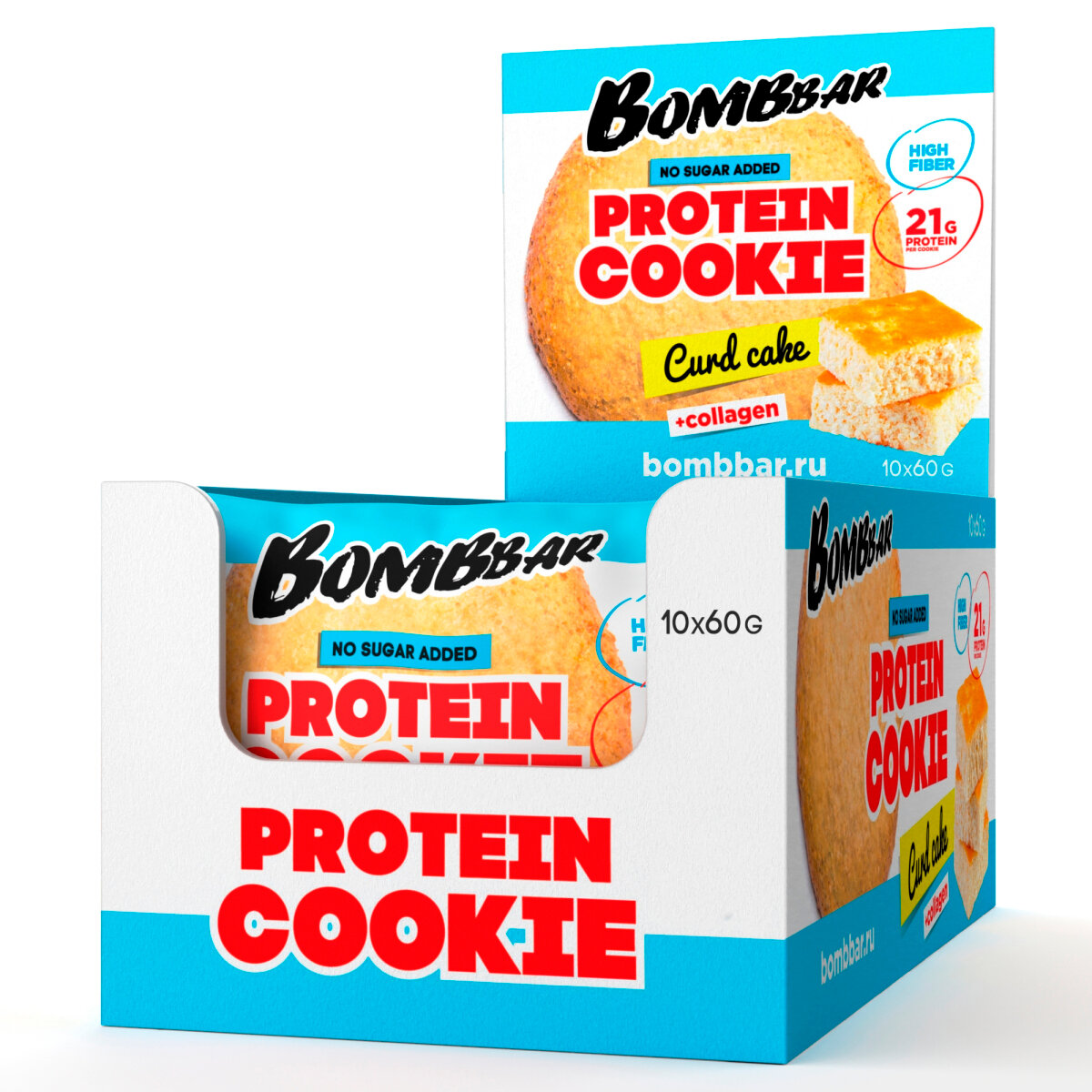 Купить Bombbar Протеиновое печенье без сахара с коллагеном Творожный кекс, 10шт х 60г