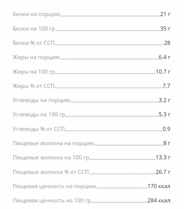 | Содержание белков в 100 г | 16 г |